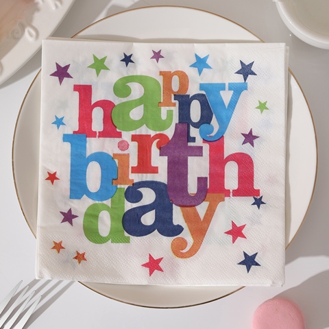 Doğum günü partisi ile mutlu doğum günü renkli mektup kek baskılı peçeteler iki stilleri seçim için parti dekorasyon